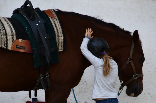 Zu Beginn einer Stunde lernen die Kinder das Pferd kennen. Gemeinsam wird das Pferd geputzt, und für das Reiten oder Führen hergerichtet. Eine große Motivation für ein Kind, sich auf ein Pferd einzulassen, ist natürlich das Reiten selbst.