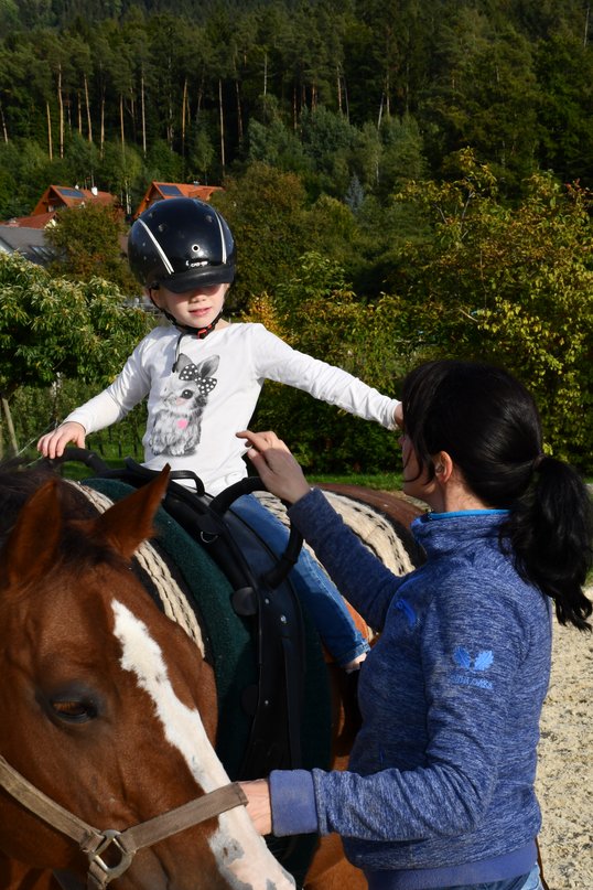 Reiten stellt eine spezielle Form der Bewegungsförderung dar, welche eine Einbindung des ganzen Körpers verlang. Durch die Übungen am Pferd, kann das Kind sehr viele motorische Erfahrungen machen bzw. Erfahrungslücken ausgleichen.